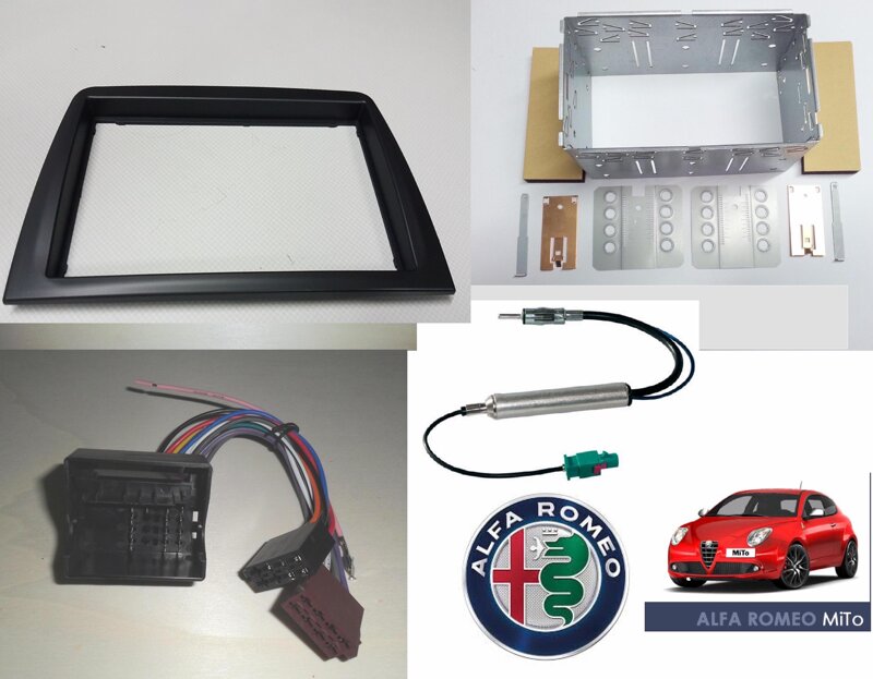 5300+5494+0839+0850 - ALFA MITO dal 2013 CORNICE 2DIN + PLANCIA MET.+CONNETTORE-con navigatore